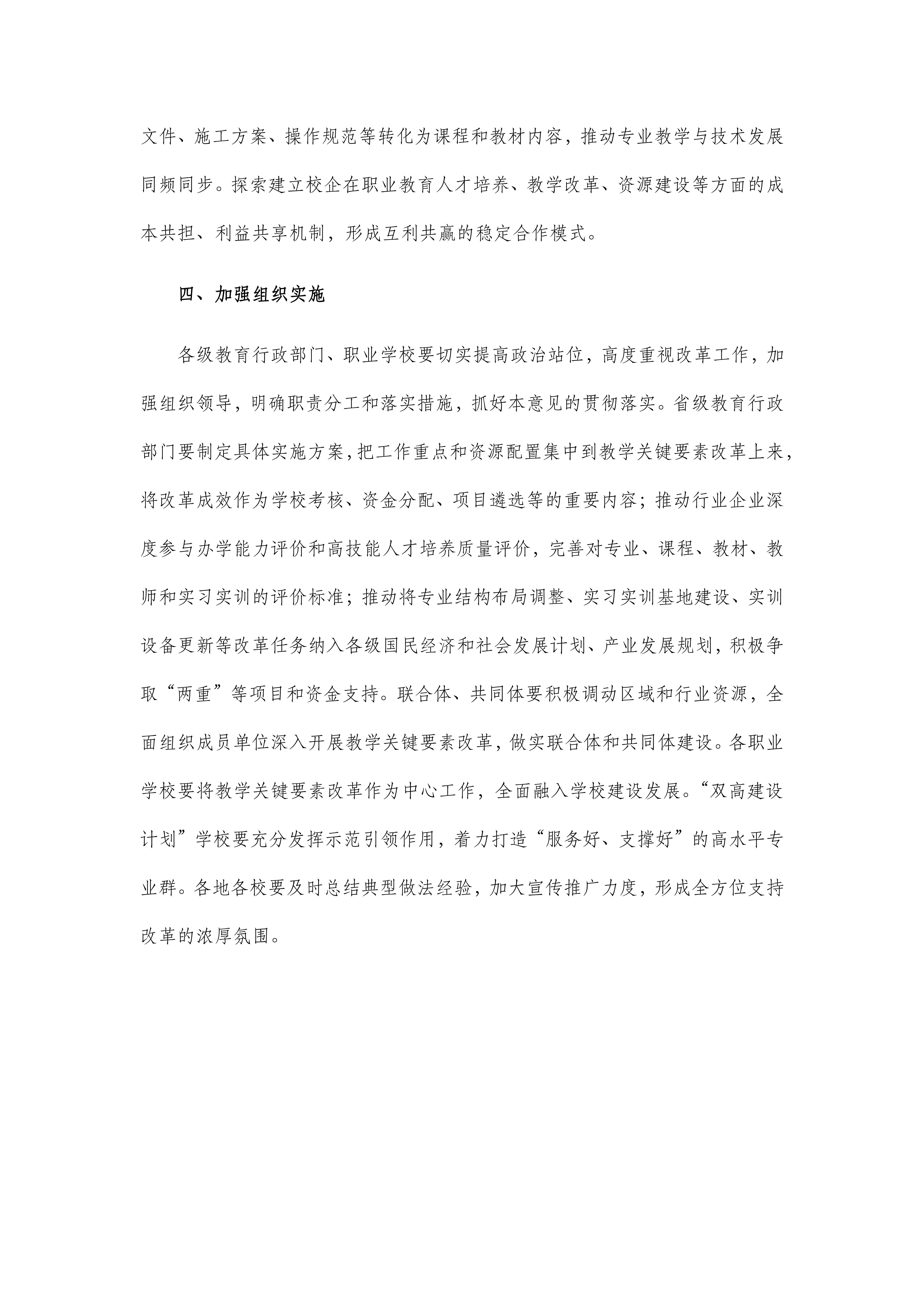 教育部关于深化职业教育教学关键要素改革的意见